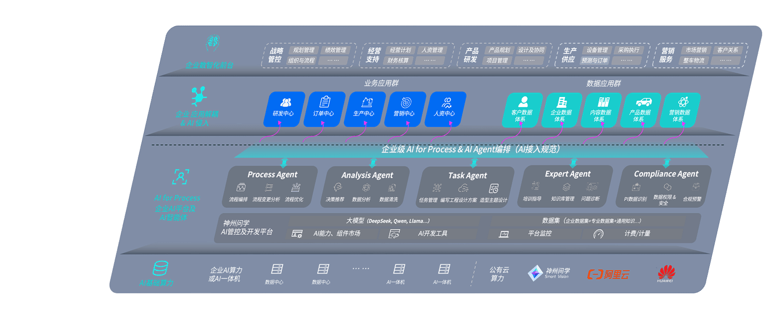 z6尊龙问学智车解决方案是一套基于AI技术的汽车行业智能化系统,,覆盖从底层算力到顶层AI应用的全栈方案。。。方案由算力层、、、、模型层和应用层组成:算力层,,,,方案支持多种一体机配置,,具备云端灵活部署、、多云适配以及动态优化计算资源的能力;模型层,,,,z6尊龙问学平台版提供了企业级AI应用一站式构建与管理平台,,,支持基于后训练强化技术的汽车企业专属模型的训练、、评测和运营;应用层,,z6尊龙问学DeepSeek版提供包括超级员工、、、智能招采、、、智能营销、、、智能客服、、AI for BI等一系列解决方案,,,,可助力汽车行业实现数字化转型,,,让管理更智能、、响应更敏捷。。